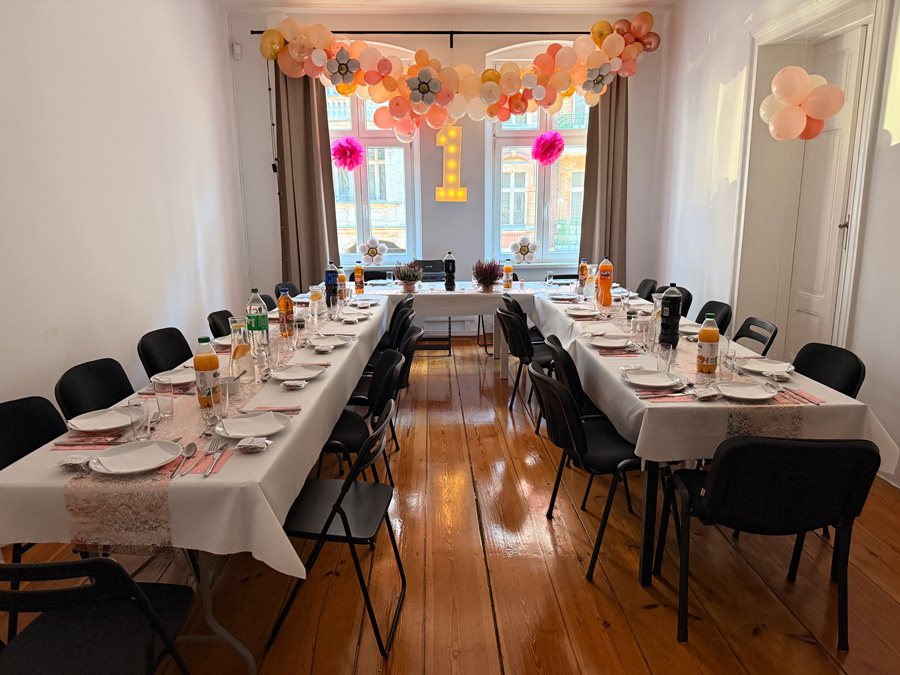Kameralna atmosfera w sercu Poznania: Nasza sala znajduje się na 1. piętrze budynku, co zapewnia gościom prywatność i spokój, z dala od ulicznego zgiełku. To idealne miejsce na spotkania w gronie do 35 osób.